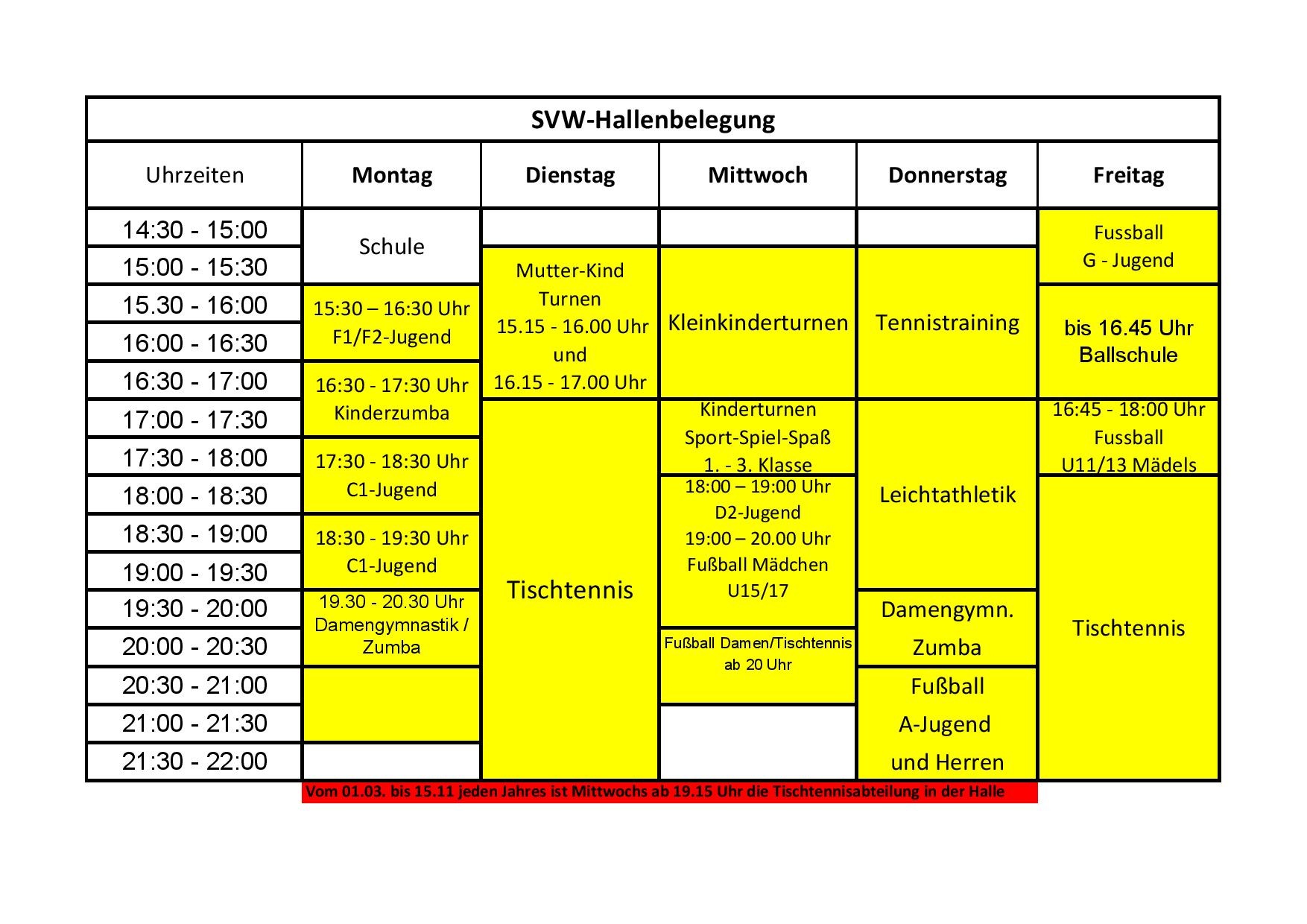Hallenbelegungsplan Stand 28.10.25