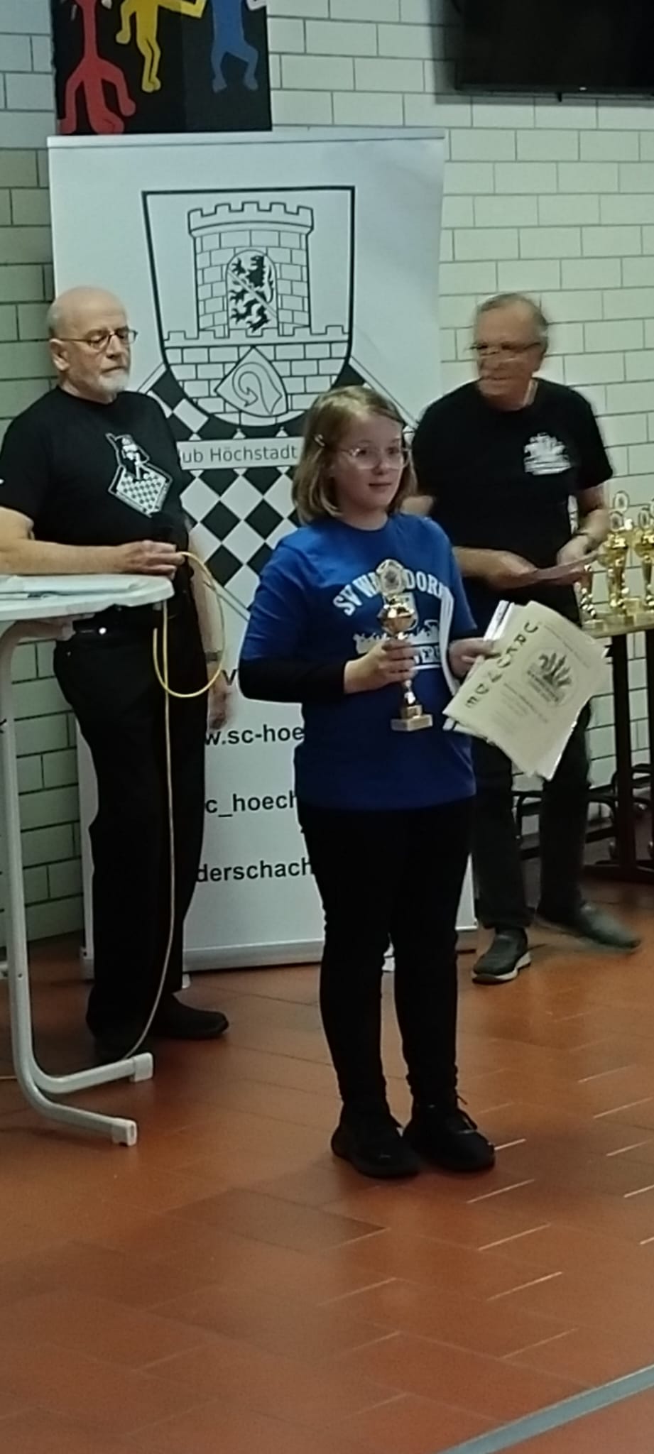 Bei der U12 (24 Teilnehmer) spielten Kreklau Hannah, Klarmann Florian, Firfarov Alexej und unsere beiden Neuen Schmitt Jonathan und Schmitt Niklas. In dieser Altersgruppe wurde Kreklau Hannah das beste Mädchen und wurde mit einem Pokal ausgezeichnet. Klarmann Florian erspielte sich den 2. Platz im Kreis Bamberg und den 3. Platz in Oberfranken und hatte 4 Siege aus 7 Spielen vorzuweisen. Jetzt kommen unsere Neuen mit Schmitt Jonathan er belegte den 4. Platz im Kreis und in Oberfranken den 6. Platz mit 3 Siegen. Schmitt Niklas landete auch mit 3 Siegen im Kreis Bamberg auf den 5. Platz und in Oberfranken auf den 7. Platz. Firfarov Alexej erreichte mit 2 Siegen und 1 Remis den 6. Platz im Kreis Bamberg und in Oberfranken den 9. Platz. Kreklau Hannah hatte am Schluss 1 ½ Punkte und war damit 7. im Kreis Bamberg und 11. in Oberfranken.